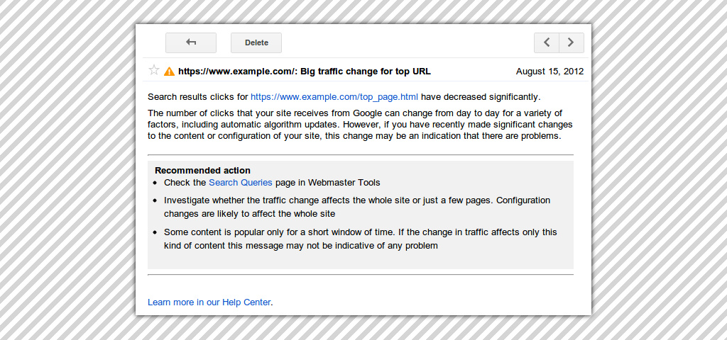 Per venire incontro alle esigenze legate al SEO è stato quindi introdotto un nuovo sistema di notifiche, il Search Query Alerts, che avvisa il webmaster nel caso in cui ci siano dei dati anomali in modo da non costringere gli utilizzatori del GWT ad un controllo costante dei report ed in sostanza automatizzando una operazione di routine.